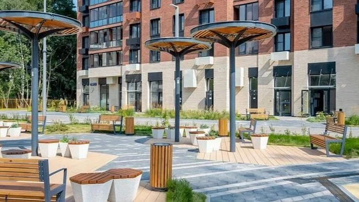 В подъездах новых домов оборудованы помещения для консьержей, колясочные и лифты. На придомовой территории смонтировали освещение и видеонаблюдение, сделали спортивные площадки.