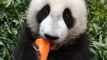 На видео медвежонок сидит в кучке бамбука и с особым усердием пытается «побороть» морковь. Для этого Катюша меняет позы и углы укуса твердого овоща.