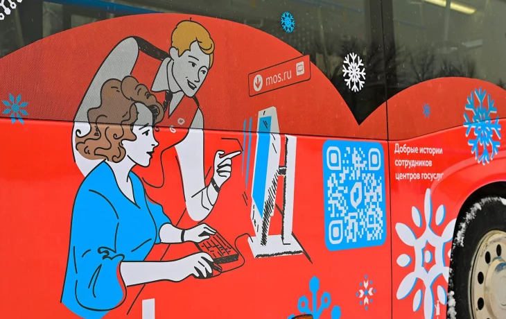 Брендированный автобус «Мои документы» начал курсировать в Москве