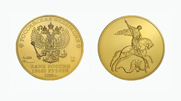ЦБ РФ выпустит золотую монету "Георгий Победоносец" номиналом 10 тыс рублей