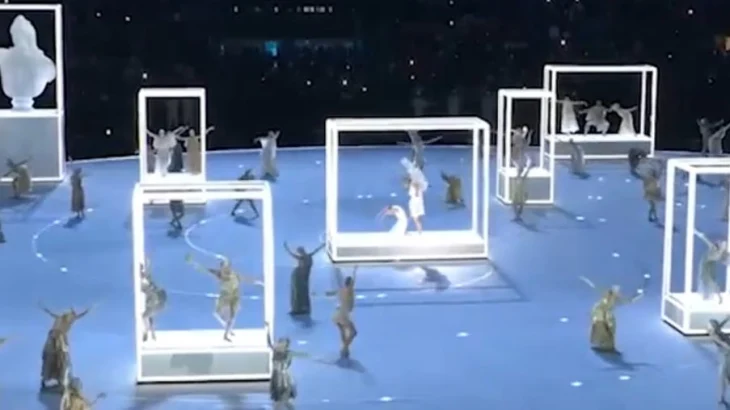 В начале церемонии на сцене выступила американская певица Мэрайя Кэри, которая исполнила песню «Volare». После этого на стадион спустились «античные музы» и 70 танцоров из Академии театра Ла Скала, исполнявшие роль статуй. Они начали выступать на сцене.