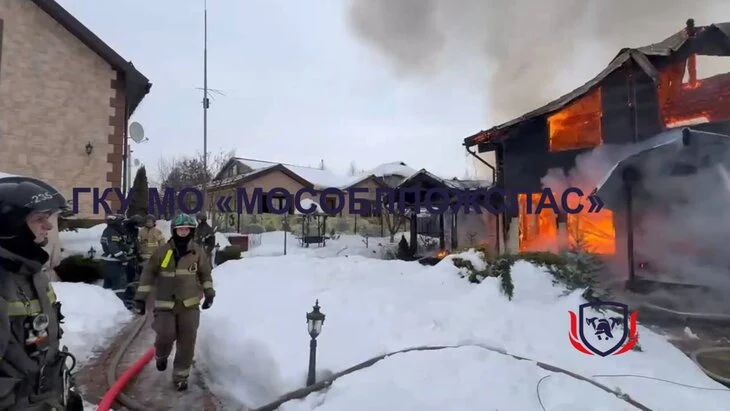 Частный дом загорелся подмосковном поселке Мещерино