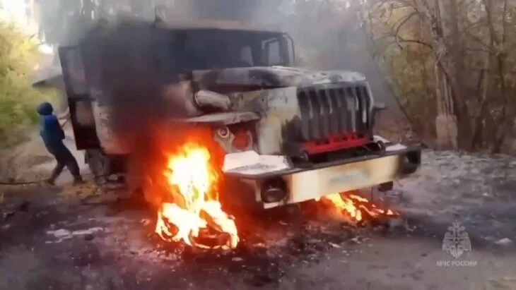 Четыре сотрудника МЧС были госпитализированы с контузией после атаки украинского БПЛА на автоцистерну в Горловке в Донецкой Народной Республике (ДНР), передает МЧС России в своем телеграм-канале.
