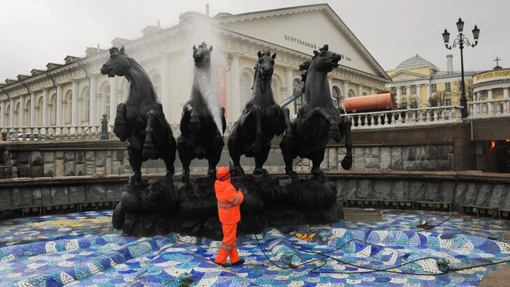 Фонтанный комплекс на Манежной площади Москвы начали готовить к открытию сезона