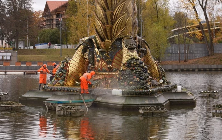 29 октября специалисты городского хозяйства подготовили фонтаны на ВДНХ к зимнему сезону. Позолоченные элементы и мозаики из смальты работники очистили мягкими кистями с применением раствора лимонной кислоты. Гранитные поверхности промыли с помощью аппаратов высокого давления нейтральным моющим средством.