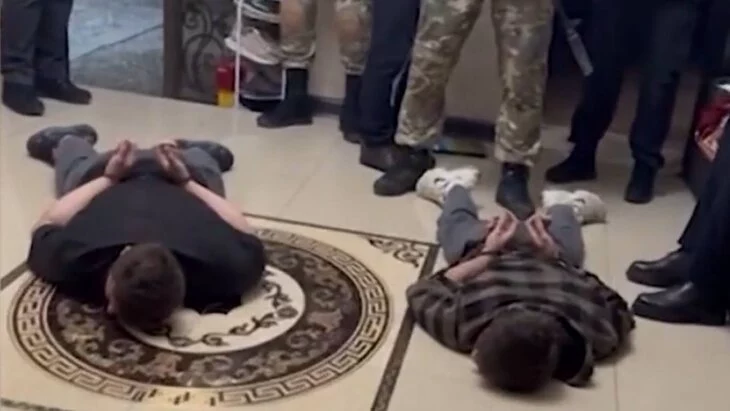 На кадрах видно, как сотрудники ФСБ задержали подозреваемых и проводят обыски, изымая оружие.