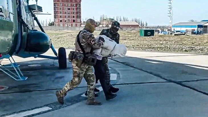 На кадрах видно, что всех поймали на улице. На вопрос, за что задержаны, двое сказали: "За теракт в "Крокусе". Одного из них перевозили на вертолете.