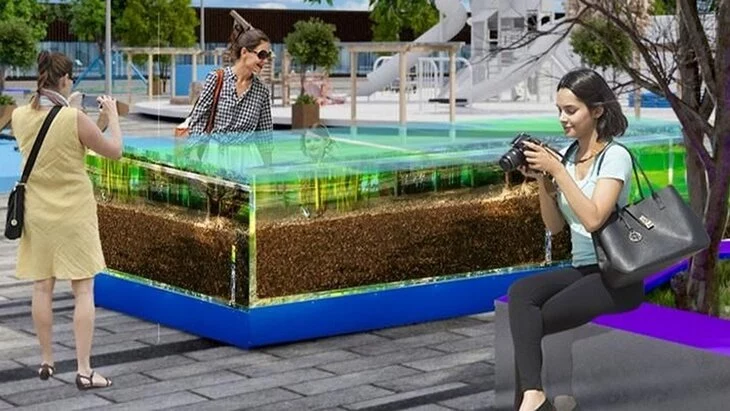 Его уменьшенную копию специалисты смастерят из прозрачного акрила для прочности и безопасности посетителей. На дне поместят мелкий гравийный щебень размером 3–10 сантиметров.