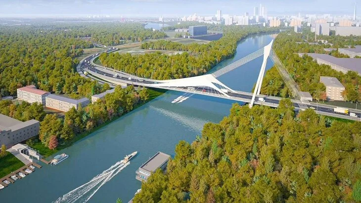 Длина моста составит 250 метров, а ширина – почти 30 метров. На нем будет организовано четырехполосное движение в обоих направлениях, а для пешеходов предусмотрят тротуары.
