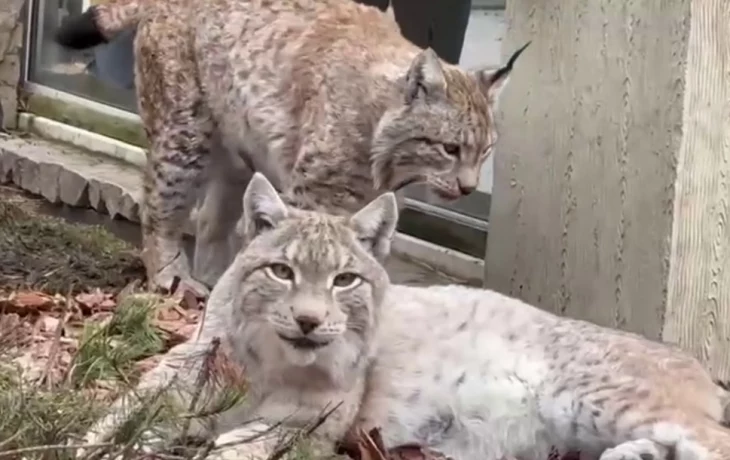 «Греются на теплой мульче»: Московский зоопарк показал, чем занимаются рыси в вольере