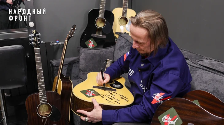 В преддверии Дня защитника Отечества, в рамках благотворительного сбора «Защитникам Отечества», организованного Народным фронтом, известные личности российской эстрады, кино и общественные деятели подписали гитары, которые будут переданы военнослужащим на передовую.