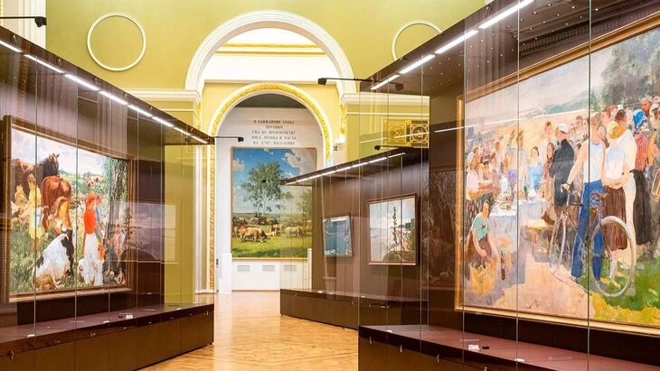 Масштабная картина Бориса Щербакова "Молочно-мясное животноводство в СССР" вернулась в павильон № 1 "Центральный" на ВДНХ. Ее разместили в лекционном зале, где проходит выставка Государственной Третьяковской галереи #ТретьяковкаНаВДНХ, сообщается на портале мэра и правительства столицы.