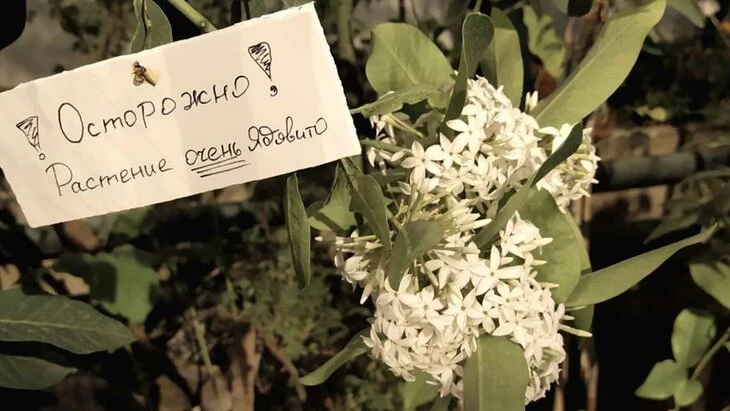 В сообщении уточнили, что "невероятно ароматное и коварное" растение расположено напротив гигантской лилии в субтропической оранжерее. Рядом с акокантерой есть табличка о ядовитости.