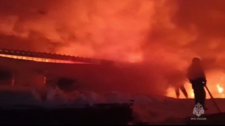 Кровля мебельной фабрики горит в Челябинской области на 3,6 тыс квадратных метров