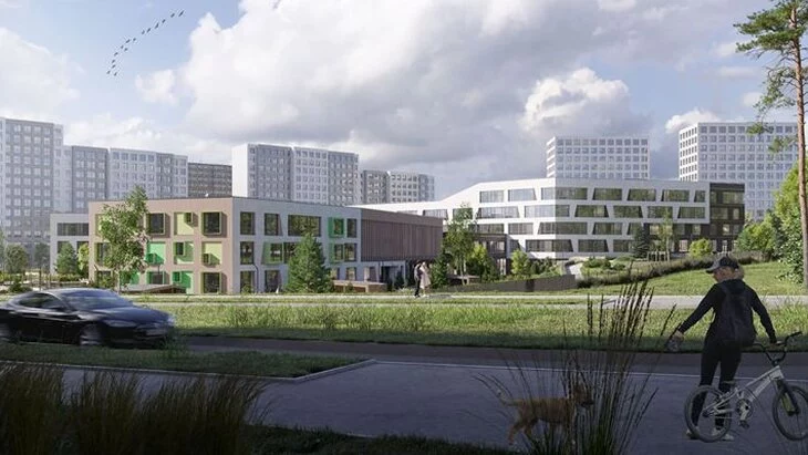 "Фасады здания будут комбинированы белым штукатурным и вентилируемыми панелями нескольких цветов. В оформлении территории применена геопластика и ландшафтный дизайн, который включает богатое разнообразие деревьев, кустарников и цветов – в общей сложности более 80 видов", – отметил Кузнецов.