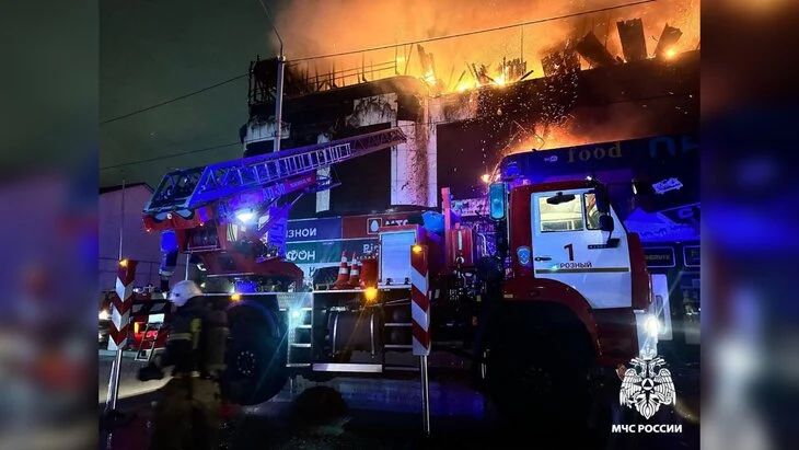 Крупный пожар произошел в магазине в центре Грозного