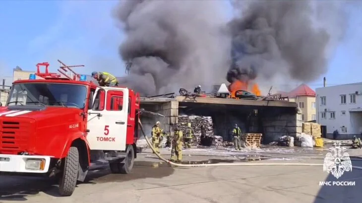 Крупный пожар произошел в металлическом ангаре в Томске
