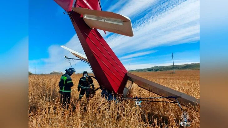 По данным ведомства, воздушное судно СП-30 зацепило линию электропередачи, после чего упало. На борту находился только пилот.