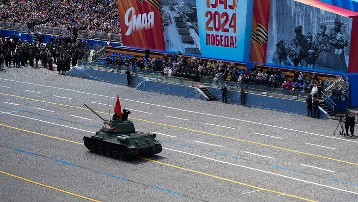 Танк Т-34 возглавил механизированную колонну на параде в честь 79-й годовщины Победы в Великой Отечественной войне.