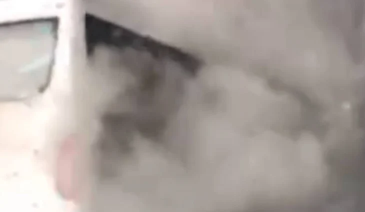 На опубликованных кадрах видно, как из машины валит дым. Других подробностей инцидента не приводится.