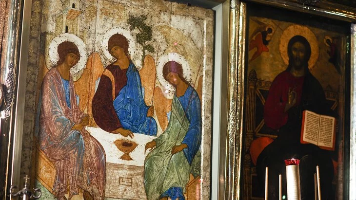 Рублев написал "Троицу" в первой половине XV века. Икона изначально предназначалась для иконостаса Троицкого храма, однако в 1929 году ее передали Третьяковской галерее, а на иконостасе разместили ее список (копию). В 2022 году подлинник перенесли в Троицкий собор, где он оставался для временного поклонения.