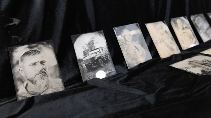 В Московском музее современного искусства прошел необычный мастер-класс. Художник Дмитрий Холкин, недавно вернувшийся из зоны проведения специальной военной операции, знакомил публику с амбротипией - старинной фотографической техникой XIX века. Вместе со своим другом фотографом Сергеем Романовым, открывшим для него этот метод, Холкин прямо на глазах у зрителей показал, как на стеклянной пластине возникают «бессмертные» изображения.