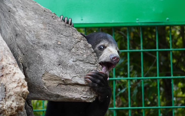 В Московском зоопарке поделились успехами в развитии детеныша малайского медведя.