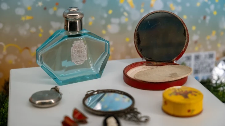 - Гости музея на Поклонной горе могут увидеть елочные игрушки 1940-1960-х годов - из стекла, ваты и фольги, стеклянные бусы для украшения новогодней елки, праздничные бумажные флажки и хлопушку. В витрине также показаны мужские и женские аксессуары, без которых невозможно представить подготовку к празднику - пудреницы, броши и флаконы для духов. Среди уникальных экспонатов - коробочка с румянами «Fard En Beaute», принадлежавшая заслуженной артистке РСФСР Лидии Колесниковой. Дополняет экспозицию граммофон изготовленный в послевоенный период на Ленинградском заводе «Северный пресс», и грампластинка с записью русских народных песен «Зимушка, зима», «Ласточка» в исполнении Государственного хора русской песни под управлением А.В. Свешникова, - отметили в Музее Победы.