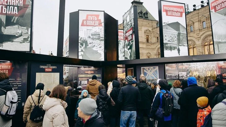На Красной площади открылся музей под открытым небом "Город живых историй", посвященный 84-й годовщине военного парада 1941 года. Экспозиция, несмотря на будний день, привлекла множество посетителей разных поколений.