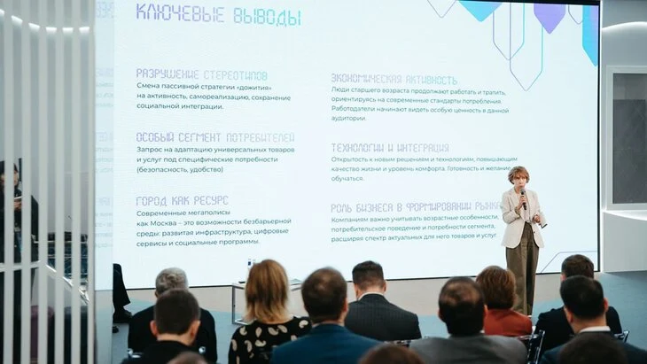 На форуме также прошла стратегическая сессия "Предприниматели для старших", в рамках которого 50 экспертов и бизнес-представителей разработали свыше 15 конкретных решений для аудитории от 55 лет. Они были основаны на исследовании, которое смогло выявить 7 перспективных ниш: от цифровых сервисов до финансовых продуктов и комфортной городской среды с акцентом на практическую интеграцию в проект "Московское долголетие".