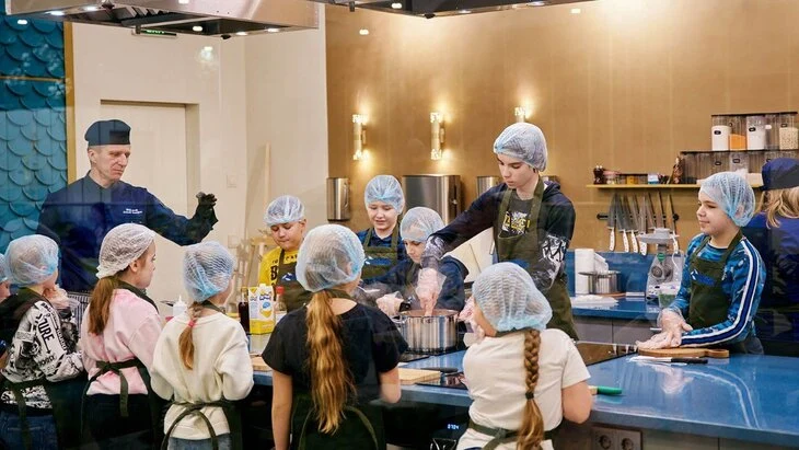 В 16:00 их ждет урок по приготовлению овощных оладий с икрой трески. В 17:00 гости вместе с поварами приготовят ржаные блины с соусом из зеленого лука, кинзы, сметаны и красной икры. Также занятие пройдет в 18:00 – дети узнают рецепт пшеничных блинов с кальмаром в сливочном соусе.