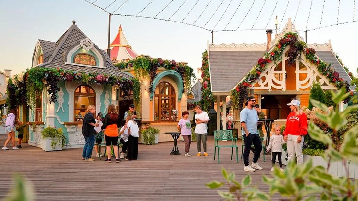 Площадка на Краснодарской улице также станет местом для отдыха и прогулок. Для этого специалисты установили здесб лавочки, карусель и фотозону. Во время проведения фестивалей в торговых шале в стиле русского модерна каждый желающий сможет купить продукты питания и сувениры. В специальных павильонах будут проводиться различные мастер-классы.