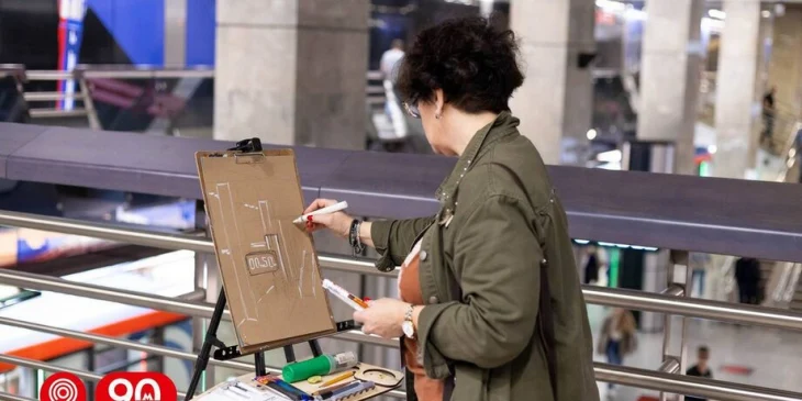 В день открытия состоялась творческая сессия. Художники писали картины, вдохновляясь современной архитектурой и атмосферой станции "Сокольники" БКЛ.