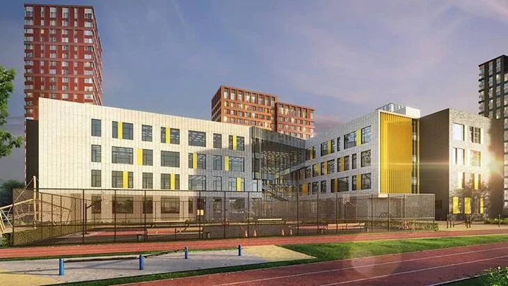Также школу площадью 12 тысяч квадратных метров строят на Волоколамском шоссе по авторскому проекту, который получил архитектурную премию Москвы. В школе создадут атриум, который можно будет использовать в качестве актового зала, а также как лекторий или место для отдыха.