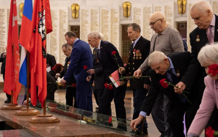 Около 200 московских ветеранов возложили цветы в Музее Победы