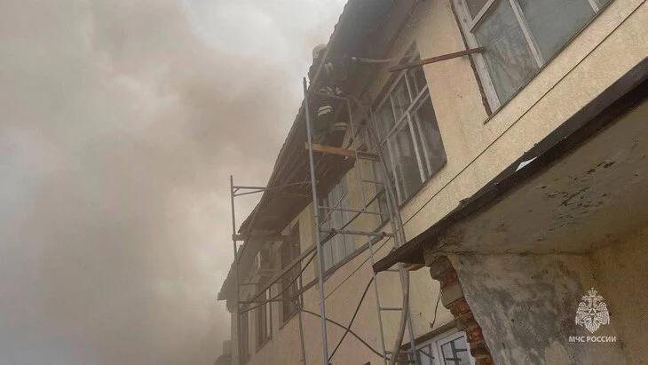 Огонь охватил склад с пиломатериалами в Апшеронске Краснодарского края ранее днем. В борьбе с огнем задействовали 38 спасателей и 12 единиц техники.