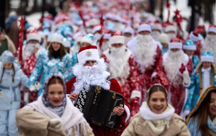 В Москве во вторник, 17 декабря, прошел молодежный парад Дедов Морозов и Снегурочек. Об этом сообщила «Комсомольская правда».