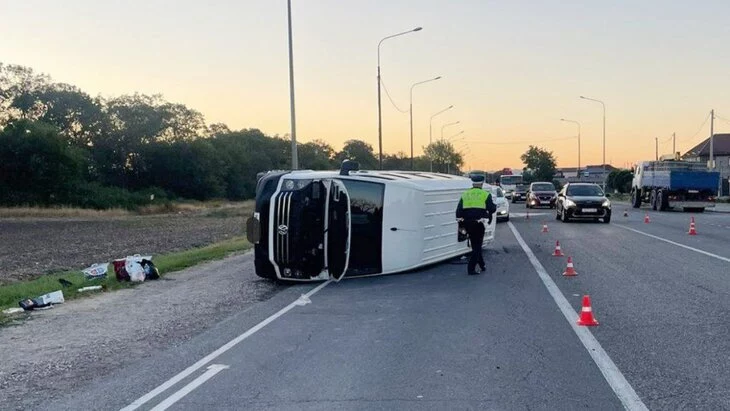 Пассажирский микроавтобус перевернулся под Анапой