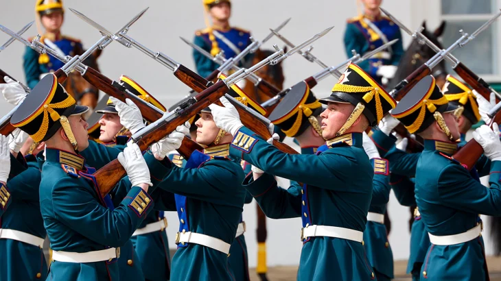 Первая в 2026 году торжественная церемония развода почетных караулов, включающая как пешие, так и конные подразделения, в субботу, 18 апреля, прошла на Соборной площади Московского Кремля. Представление уже более 20 лет является одной из главных туристических достопримечательностей города.