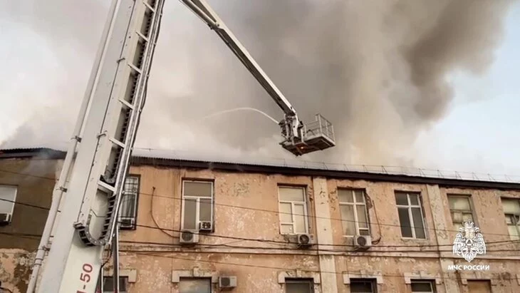 Пожар площадью 900 "квадратов" вспыхнул в трехэтажном здании в Махачкале
