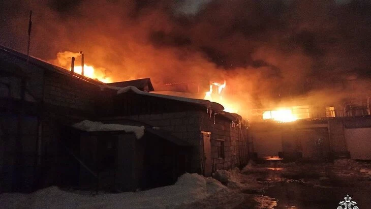 Площадь возгорания оценивается в тысячу квадратных метров. Спасатели видят угрозу перехода огня на соседние объекты.