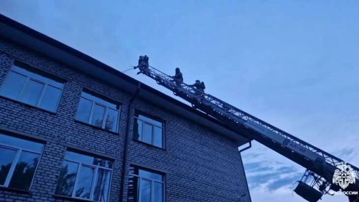 Огонь охватил здание по всей площади. Всего к тушению огня привлечено 63 специалиста и 18 единиц техники МЧС.
