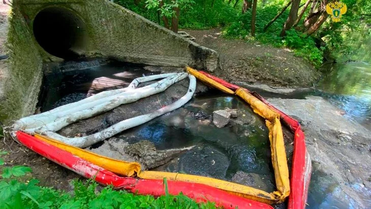 Параллельно эксперты начали проводить работы по обработке поверхности реки специальными средствами, ликвидирующими загрязнение.