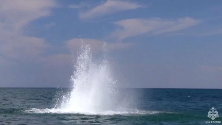 Позднее сотрудники МЧС России уничтожили 4 суббоеприпаса, которые были найдены на пляже "Учкуевка" после атаки украинских военных. Все они были обнаружены на глубине до 5 метров. После этого сотрудники ведомства продолжили водолазные работы по поиску и обнаружению взрывоопасных предметов.