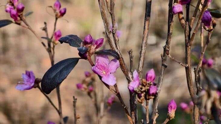 Рододендрон даурский, известный также как сибирский багульник, распустился в ботаническом саду МГУ "Аптекарский огород". Об этом сообщается в телеграм-канале сада.
