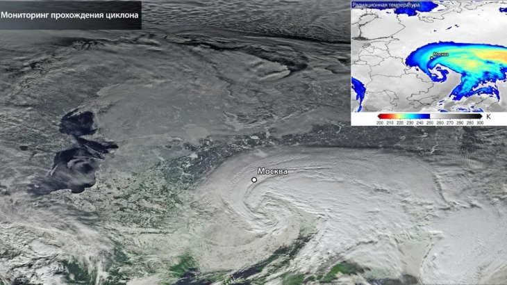 Роскосмос показал снимок накрывшего Москву балканского циклона