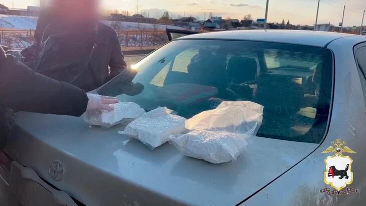 Полиция остановила иномарку на подъезде к городу Зиме. При досмотре автомобиля стражи порядка обнаружили три пакета с синтетическими наркотиками, спрятанные под ковриком переднего пассажирского сиденья. Общий вес изъятых запрещенных веществ составил более 3-х килограммов, говорится в сообщении.