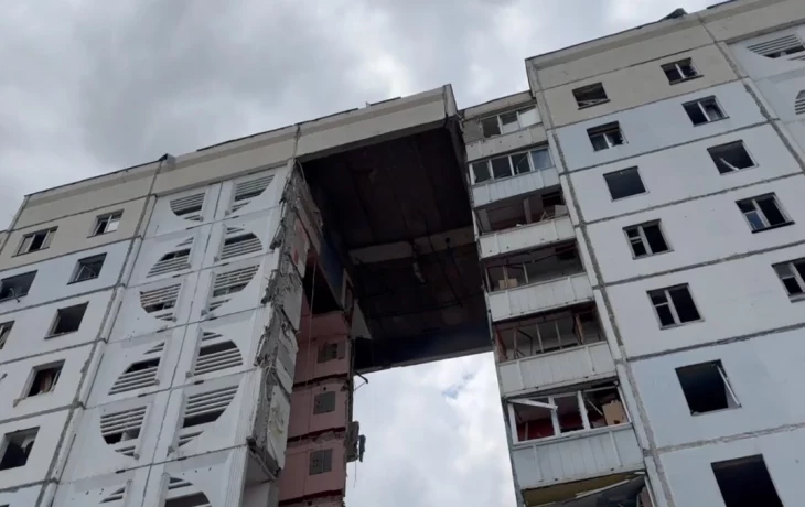 Губернатор Белгородской области Вячеслав Гладков сообщил, что снаряд прилетел в дом на Харьковской горе. В результате прямого попадания обрушился весь подъезд с десятого по первый этаж. В Сети появились кадры с камеры наблюдения, которые зафиксировали момент прилета снаряда.