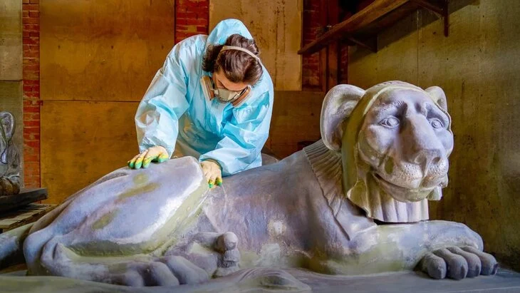Сергей Собянин рассказал в своем телеграм-канале о реставрации чугунных львов, которые расположены в усадьбе Кузьминки.