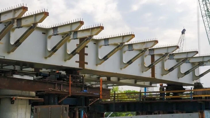 Путепровод через железнодорожные пути МЦД-2 на финальном участке магистрали Солнцево – Бутово – Варшавское шоссе готов на треть. Специалисты приступили к надвижке пролетного строения, сообщил Сергей Собянин в своем телеграм-канале.